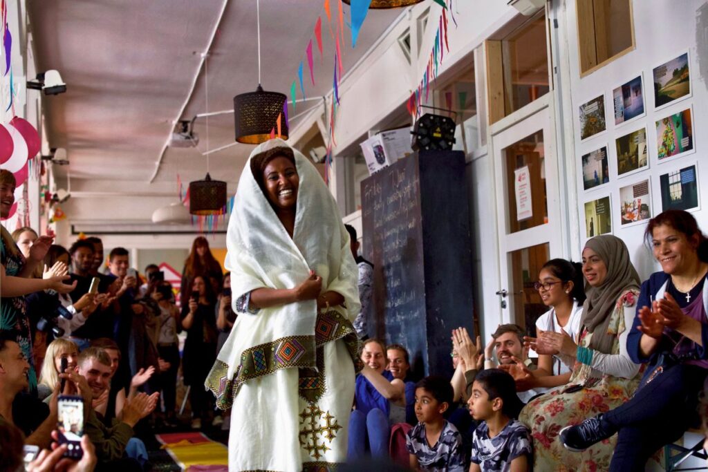 Trampoline House is a volunteer-run community center in Copenhagen, Denmark offering legal aid and support to displaced people. Founded in 2010 by Danish art students in response to stricter immigration laws, the organization utilizes art and community to raise awareness about issues affecting migrants.